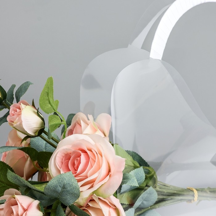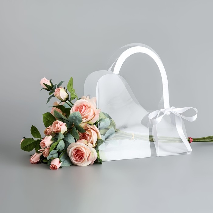 Изготовленная из высококачественного прозрачного пластика, эта сумка подчёркивает красоту растений, создавая прозрачную витрину для их изысканных форм и цветов.