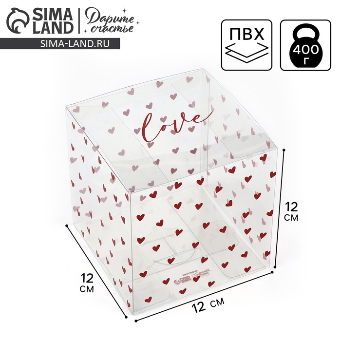 Коробка подарочная ПВХ, упаковка, «Любовь внутри», 12 х 12 х 12 см