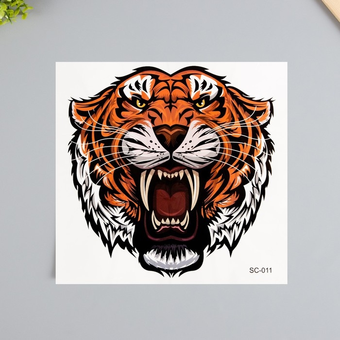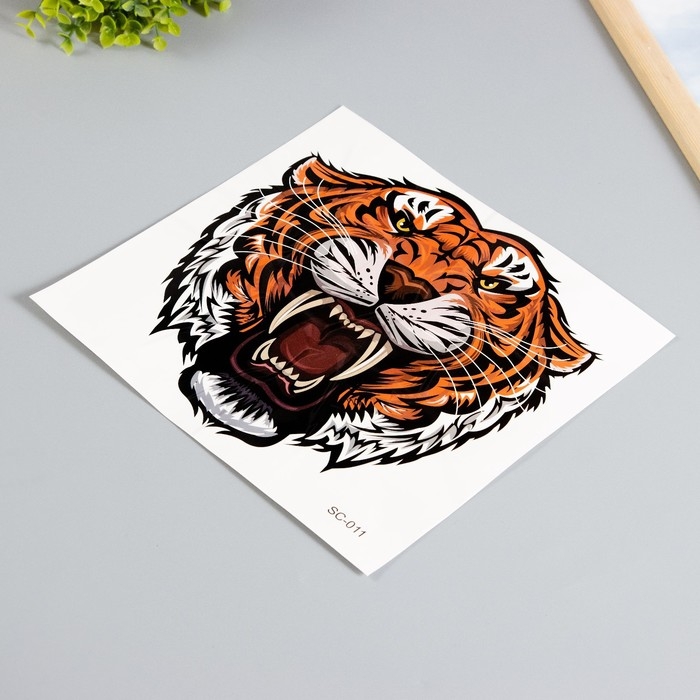 Татуировка на тело цветная "Тигр с клыками" 38х24 см