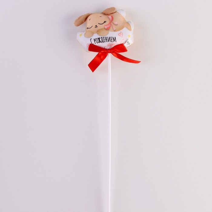 Мягкая игрушка в букет "С рождением доченьки!" зайка на палочке