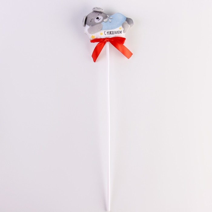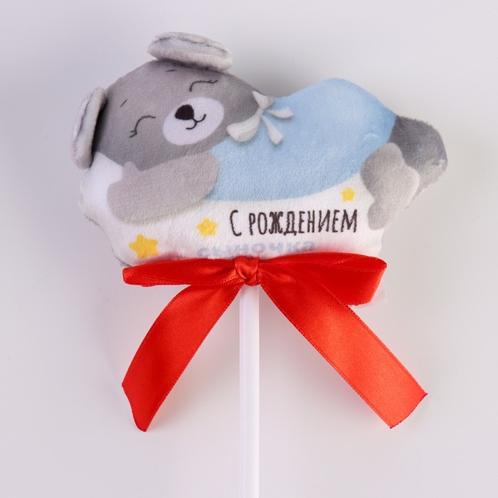 Мягкая игрушка в букет "С рождением сыночка" мишка на палочке