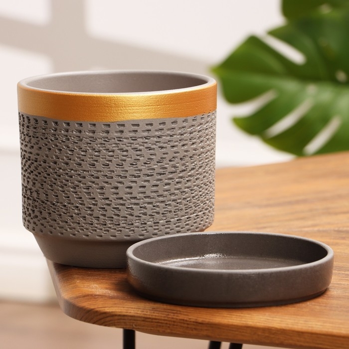 Горшок цветочный "Брюссель" серый золото цилиндр №2, 1,5 л