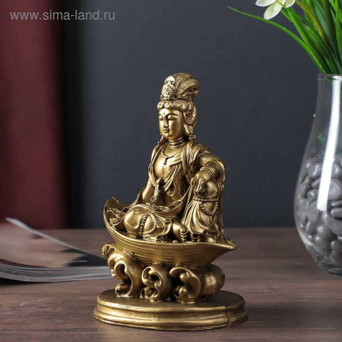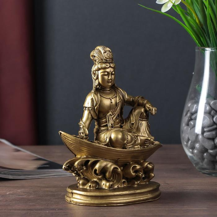 Нэцке полистоун бронза "Лакшми в лодке" 16х11,5х8,5 см