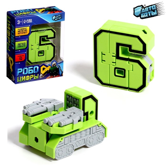 Робот-трансформер «Цифра 6» - невероятная военная техника, способная разгромить любого противника. Это интересный маленький друг, который поможет вашему ребенку развить воображение, мелкую моторику и пространственное мышление. Малыш легко обучится счёту благодаря новому приятелю, ведь игрушка имеют яркий дизайн и проработанные элементы. Из простой фигурки робот сможет превратиться в мощный танк, который победит любого врага и поможет ребёнку освоить новые навыки.