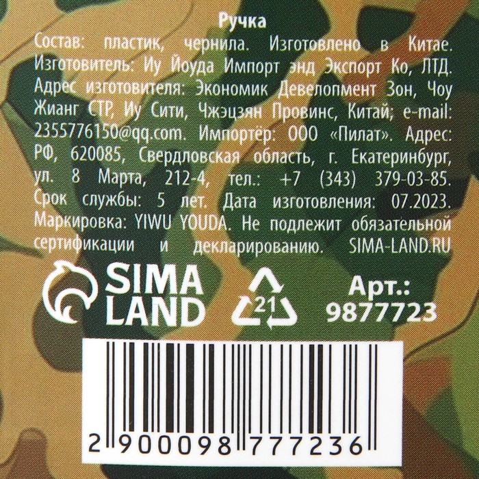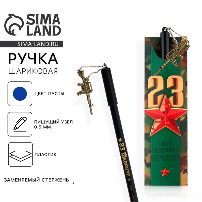 Ручка шариковая синяя паста 0.5 мм с подвеской автомат «С днём защитника отечества» пластик