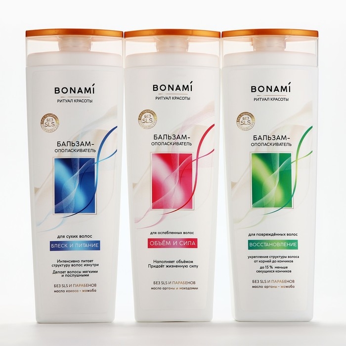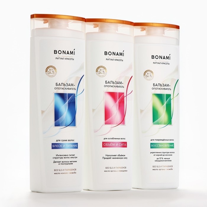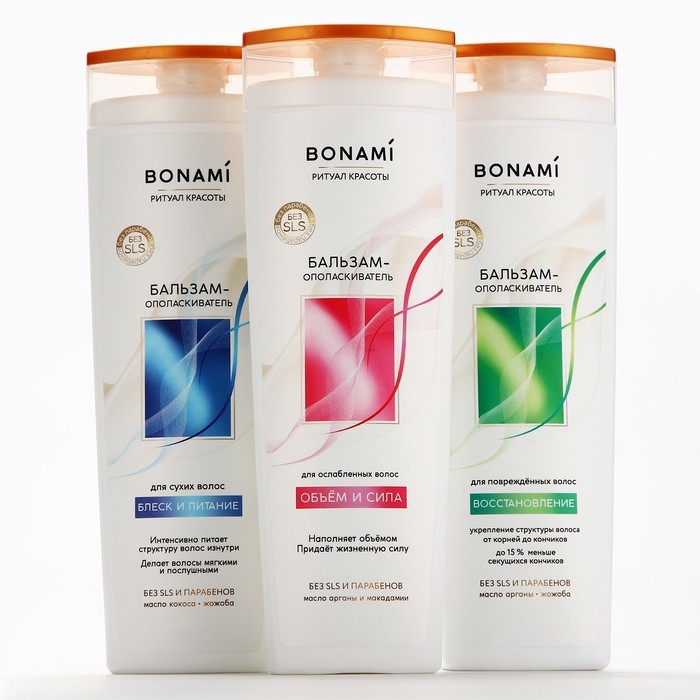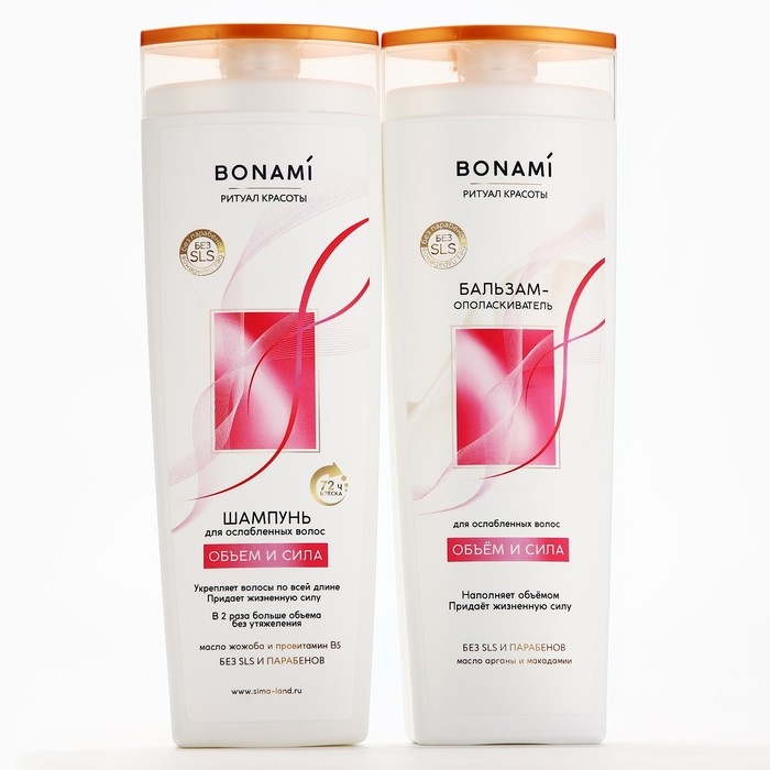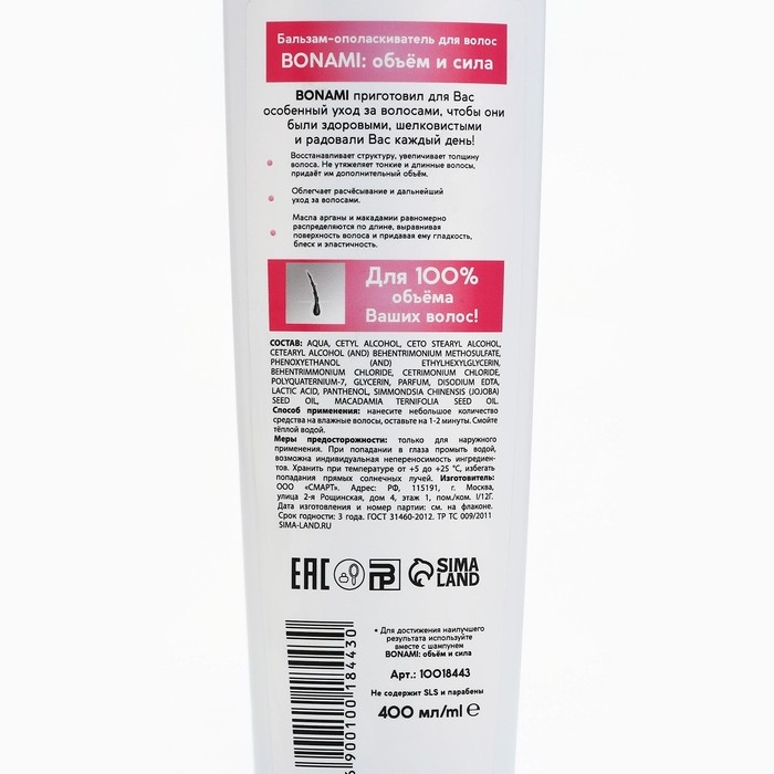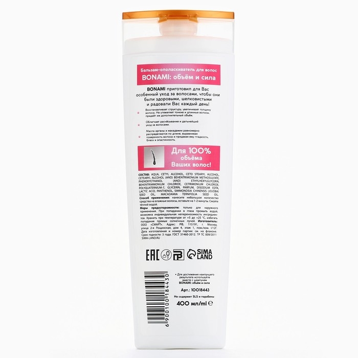 Бальзам для ослабленных волос с маслом арганы и макадамии, объём и сила, 400 мл, BONAMI