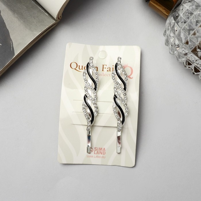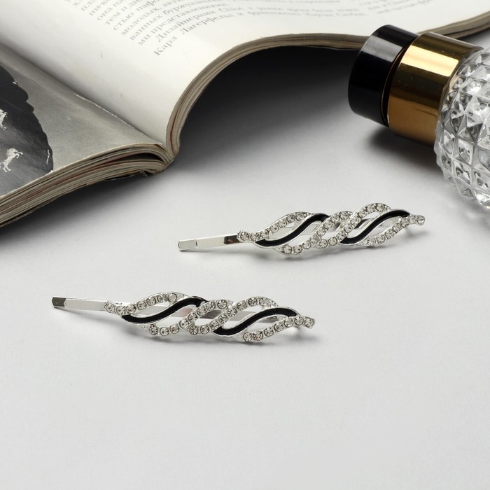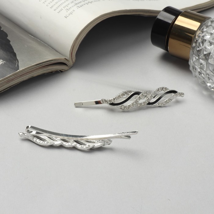Невидимка для волос "Аннабелль" (набор 2 шт) волна, 6,5 см, серебро