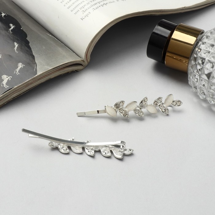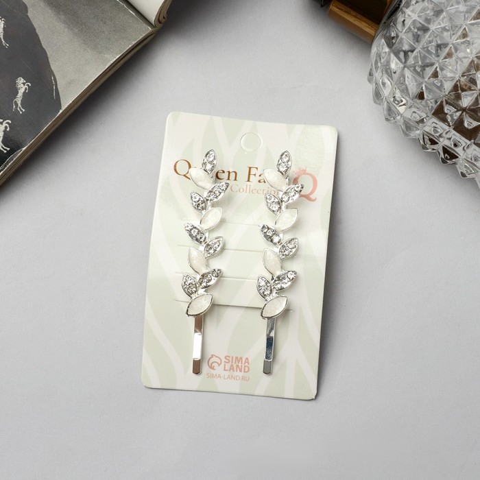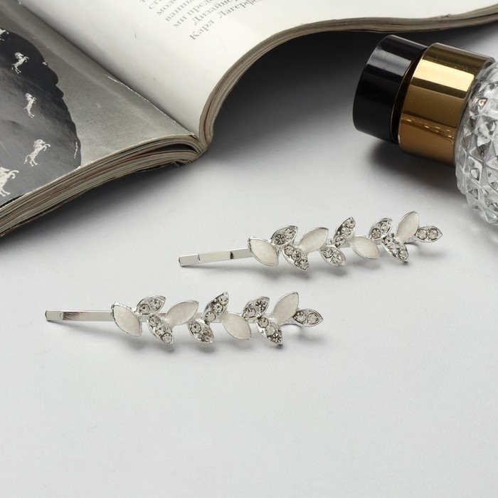 Невидимка для волос "Аннабелль" (набор 2 шт) лепесток белый, 6,5 см, серебро