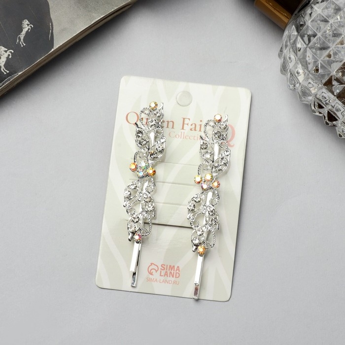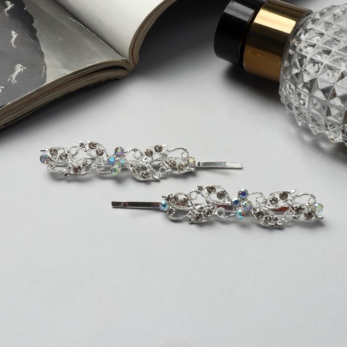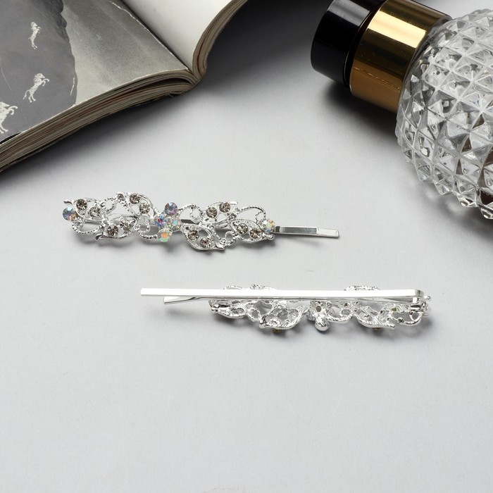 Невидимка для волос "Саманта" (набор 2 шт) 6,5 см, серебро