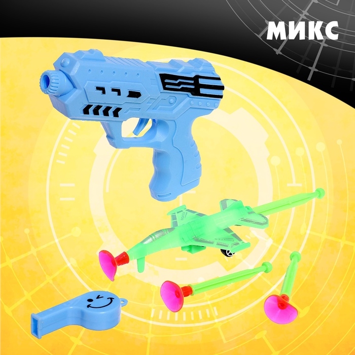 Пистолет «Лётчик», стреляет присосками, со свистком, цвет МИКС