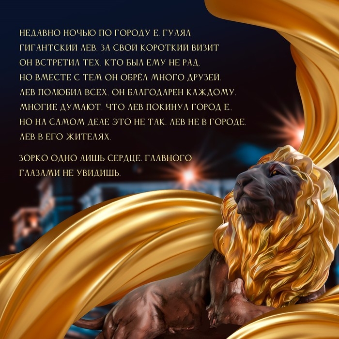 Недавно ночью по городу Е. гулял гигантский лев. За свой короткий визит он встретил тех, кто был ему не рад, но вместе с тем он обрёл много друзей.