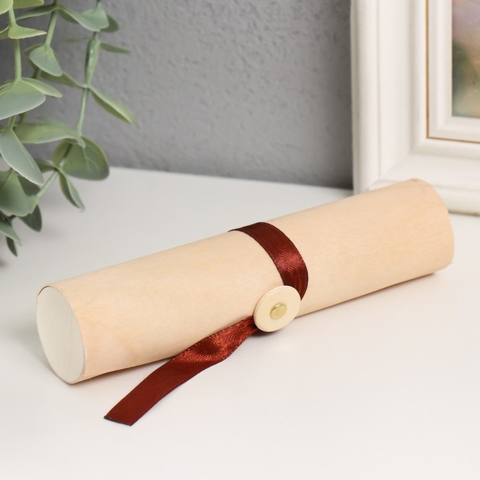 Шкатулка дерево под роспись тубус "Тонкий лист" с пуговкой 3х3х13,5 см