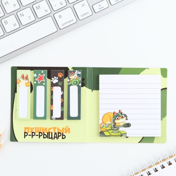 Подарочный набор в открытке «Пушистый р-р-рыцарь», стикеры 4х20 л, отрывной блок 30 л