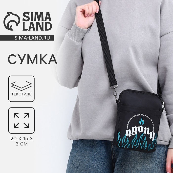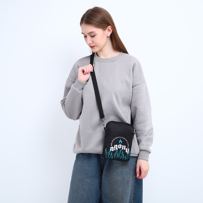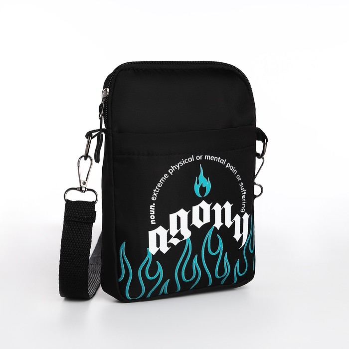 Сумка молодёжная на длинном ремне Agony, 20 х 15 х 3 см, отдел на молнии, цвет чёрный