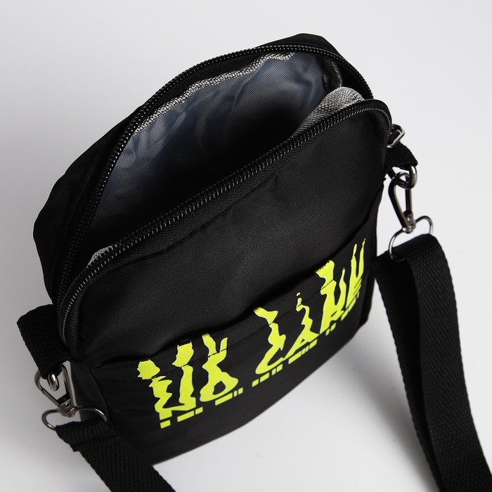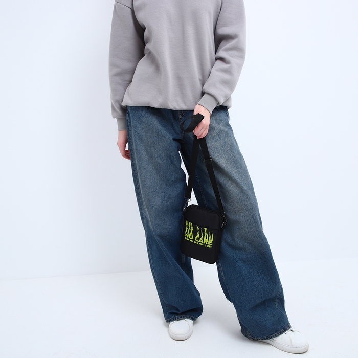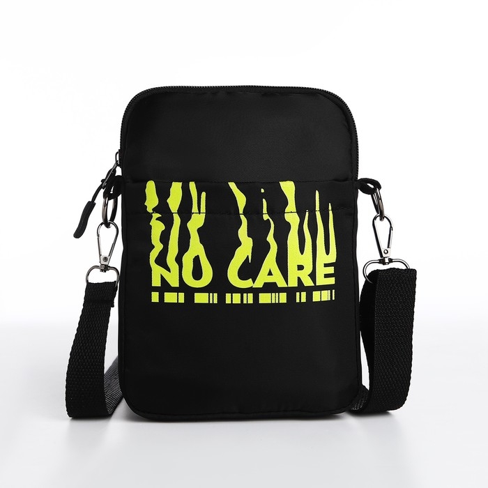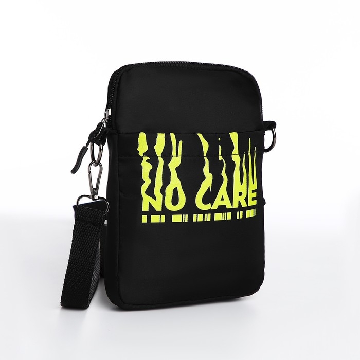 Сумка молодёжная на длинном ремне No care, 20 х 15 х 3 см, отдел на молнии, цвет чёрный