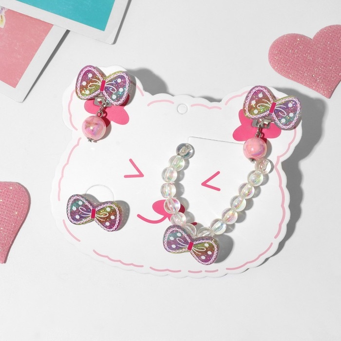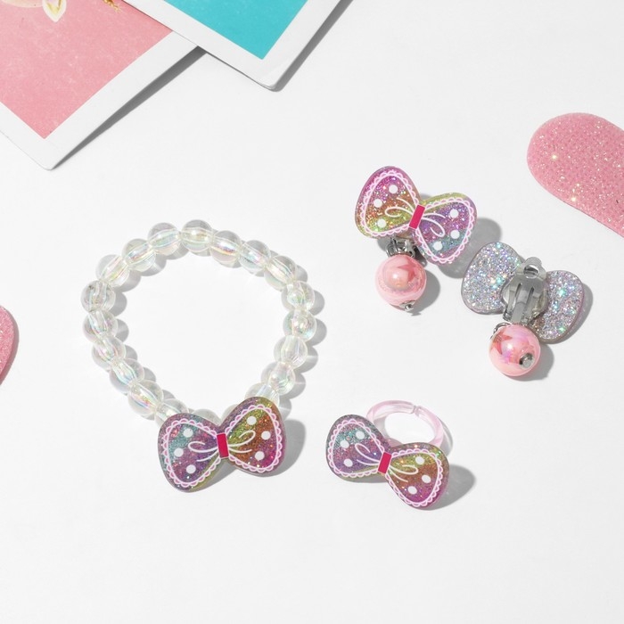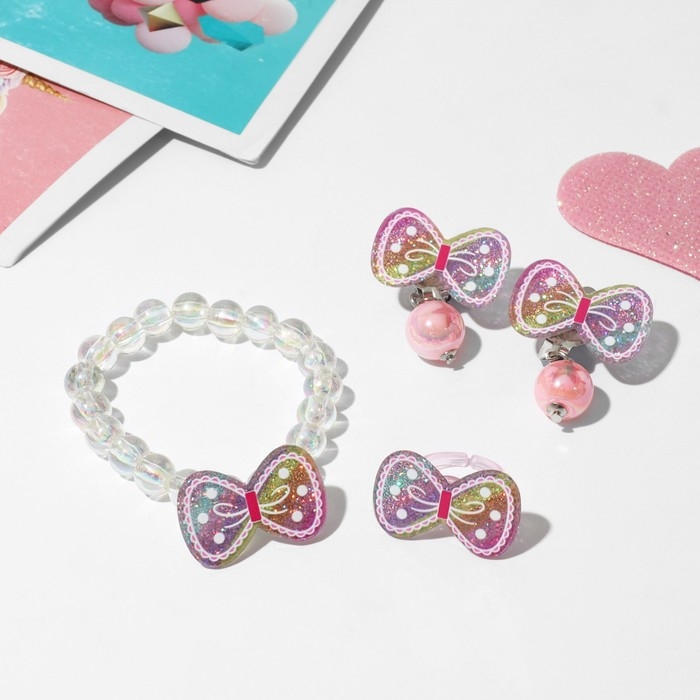 Набор детский «Выбражулька» 3 предмета: клипсы, браслет, кольцо, бантики, цветной