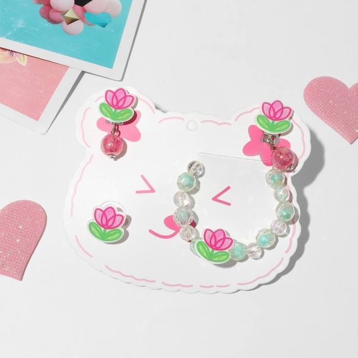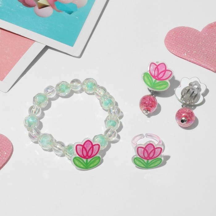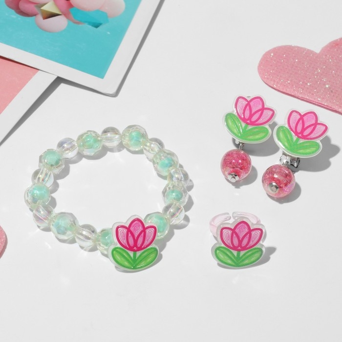 Набор детский «Выбражулька» 3 предмета: клипсы, браслет, кольцо, цветы тюльпаны, цветной