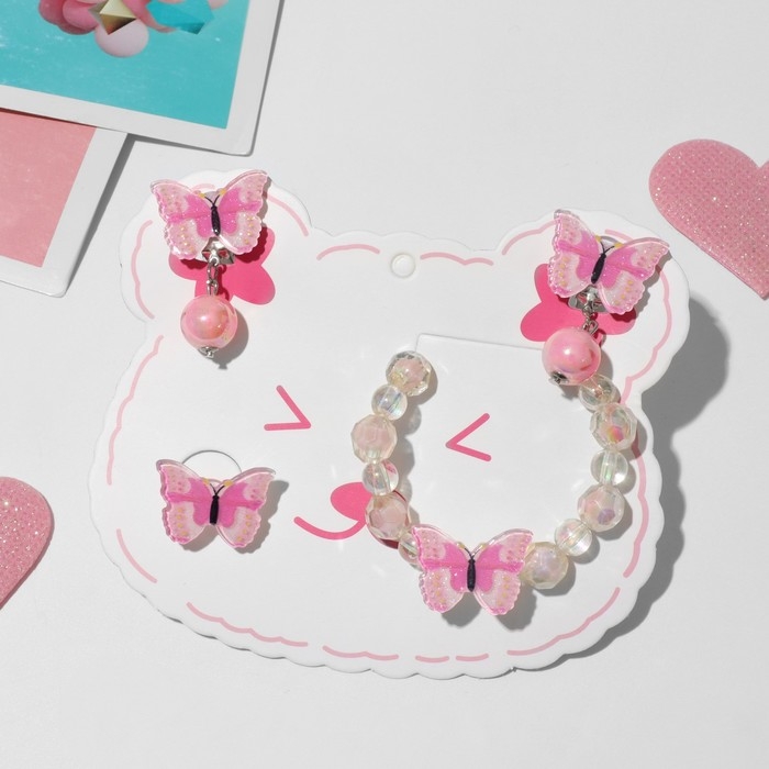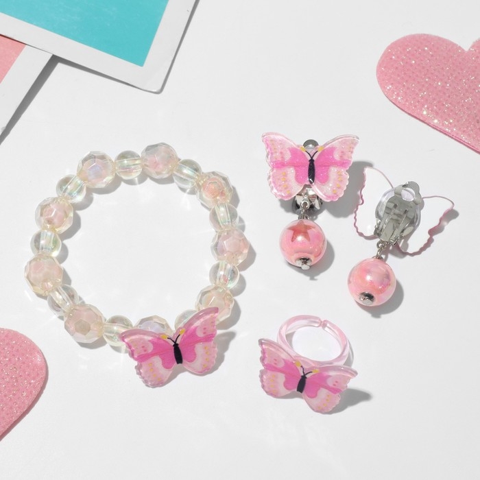 Набор детский «Выбражулька» 3 предмета: клипсы, браслет, кольцо, бабочки, цветной