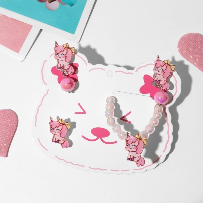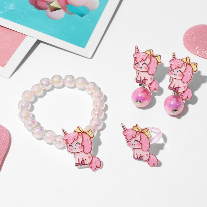 Набор детский «Выбражулька» 3 предмета: клипсы, браслет, кольцо, единорожки, цветной