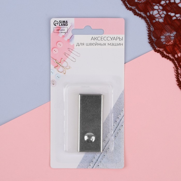Магнитный ограничитель для швейных машин с плоской металлической платформой устанавливается параллельно лапке для создания идеально прямого шва и задания отстрочки, на необходимом расстоянии друг о друга.