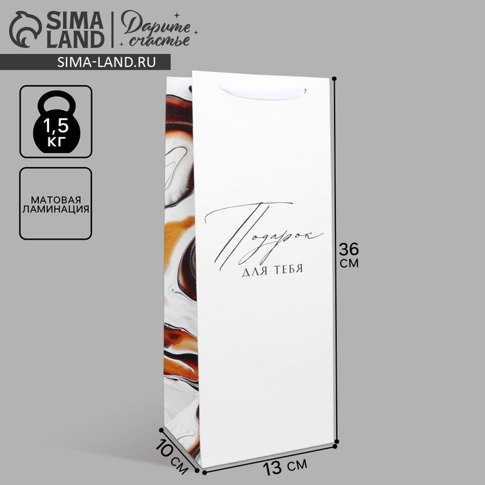Пакет подарочный под бутылку, упаковка, «Подарок для тебя», 36 х 13 х 10 см