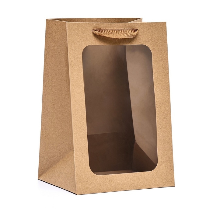 Пакет подарочный, с окном, 30 х 20 х 16 см, крафт