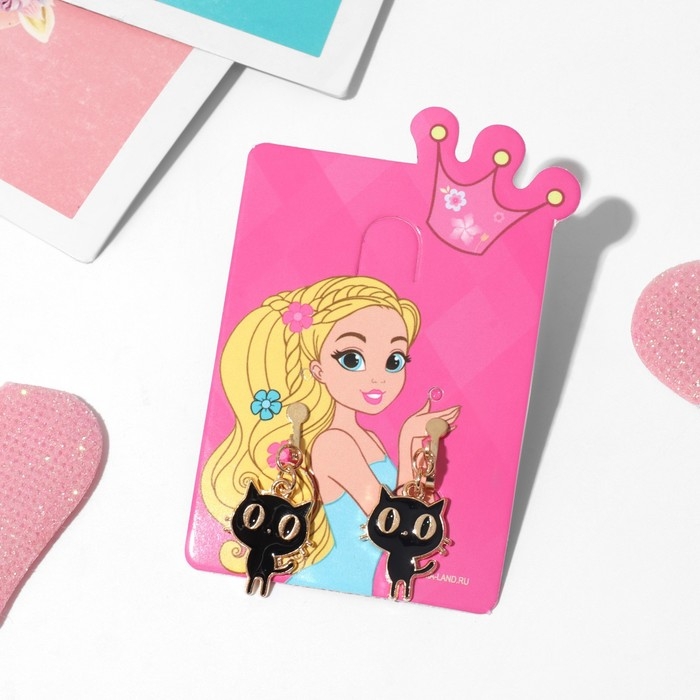 Клипсы детские «Выбражулька» котята, цвет чёрный в золоте