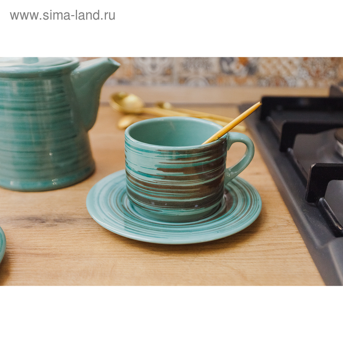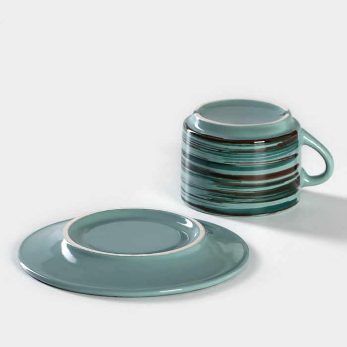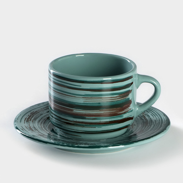 Чайная пара керамическая Persea, кружка 100 мл, блюдце 14х10 см, цвет зелёный-коричневый