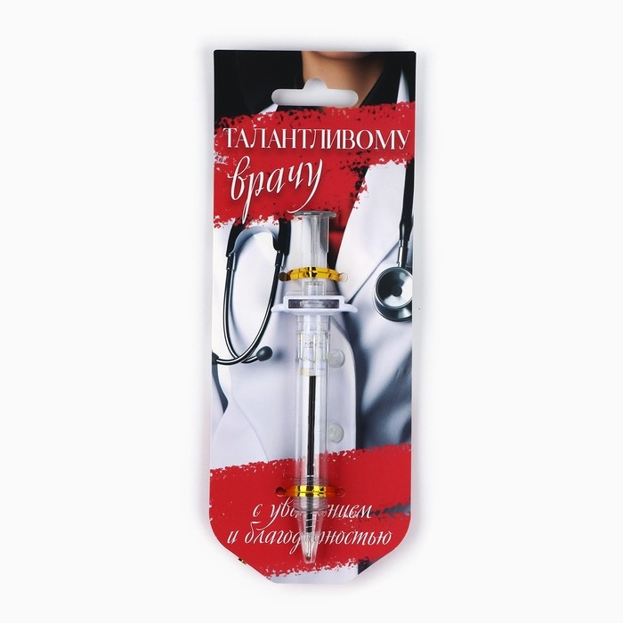 Ручка прикол шариковая синяя паста, шприц «Талантливому врачу», на подложке