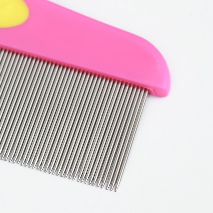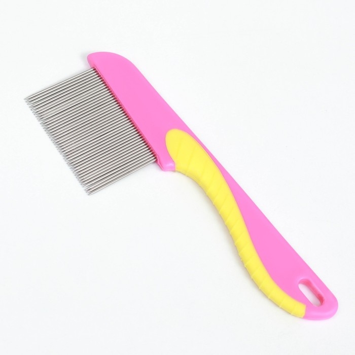 Расческа для шерсти 15,6 х 5,3 см, длинные зубья 3,4 см, розово-желтая