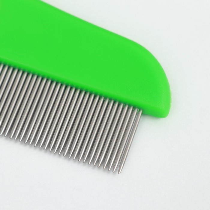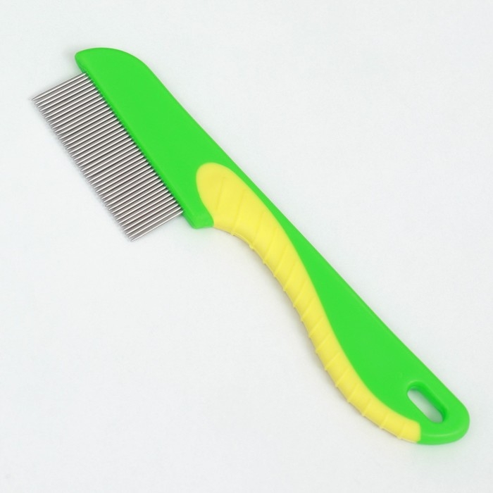 Расческа для шерсти 15,6 х 3,6 см, короткие зубья 1,7 см, зелёно-жёлтая