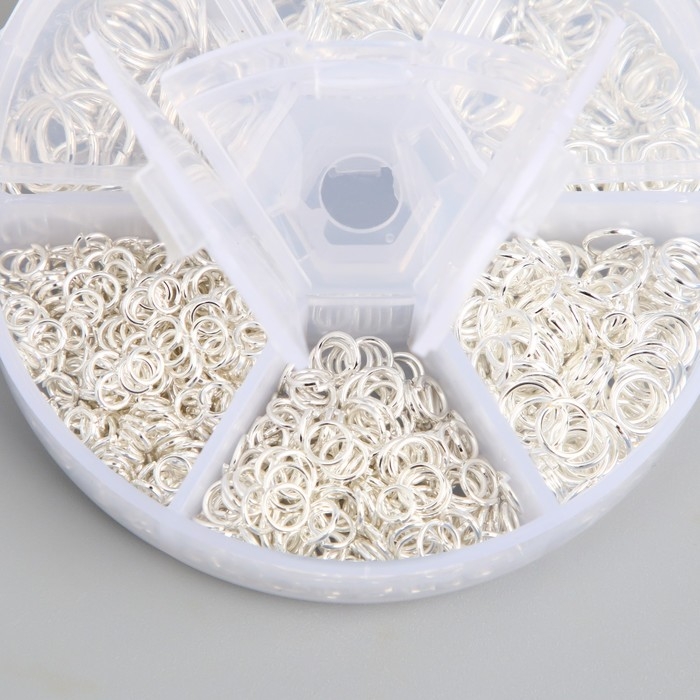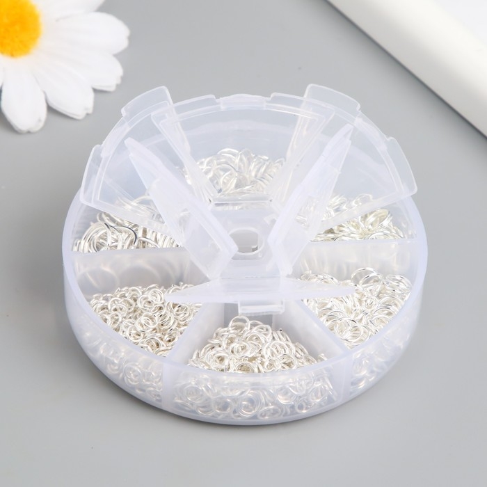 Кольца зажимные металл в шкатулке "Серебро" 880 шт 8х8х2 см
