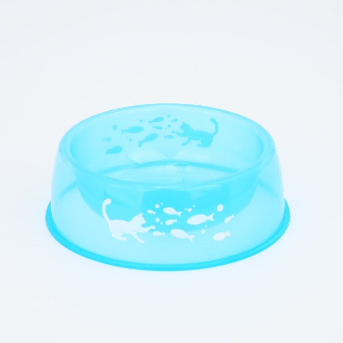 Миска пластиковая «Котик с рыбками», 300 мл, синий