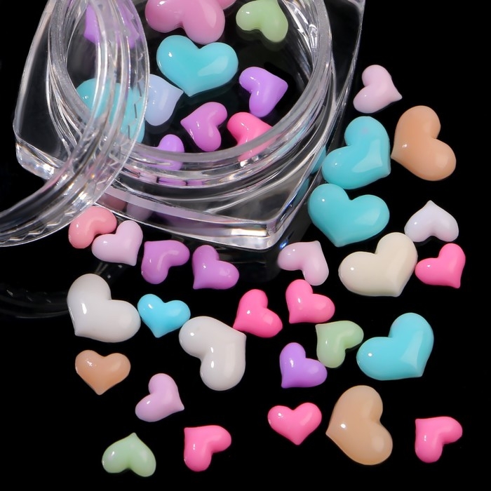 Фигурки для дизайна ногтей «Сердца», объёмные, цвет разноцветный