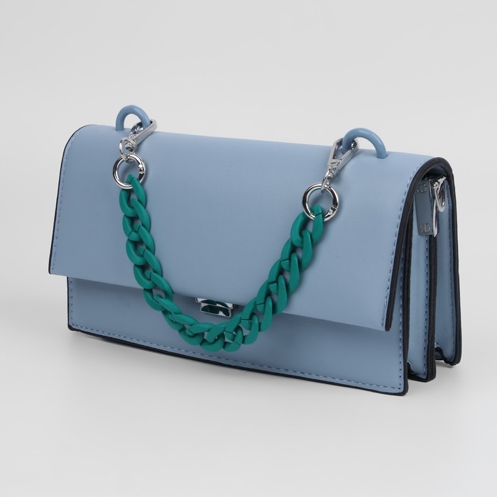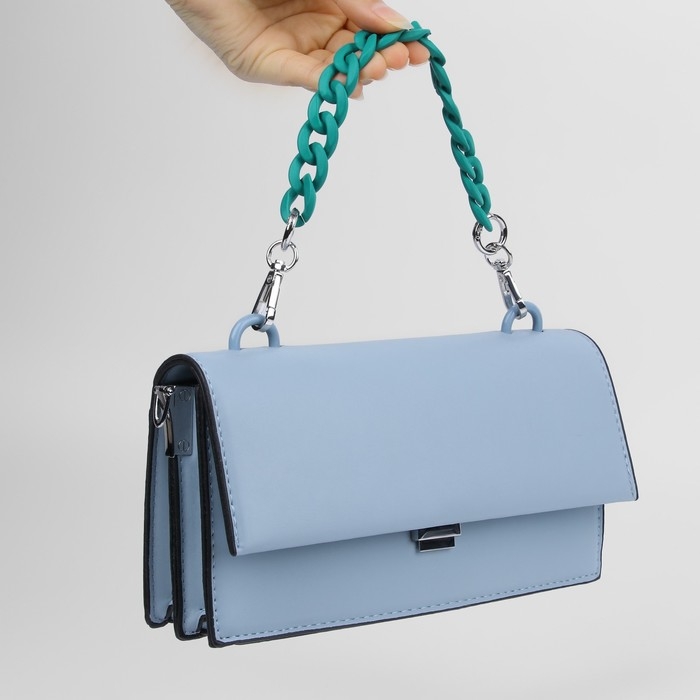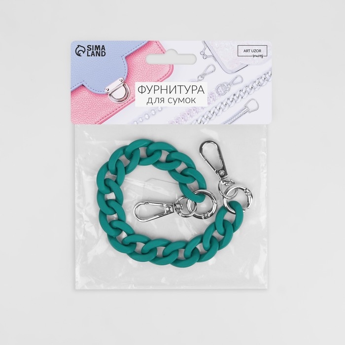 Цепочка для сумки, с карабинами, пластиковая, 23 × 17 мм, 30 см, цвет зелёный/серебряный