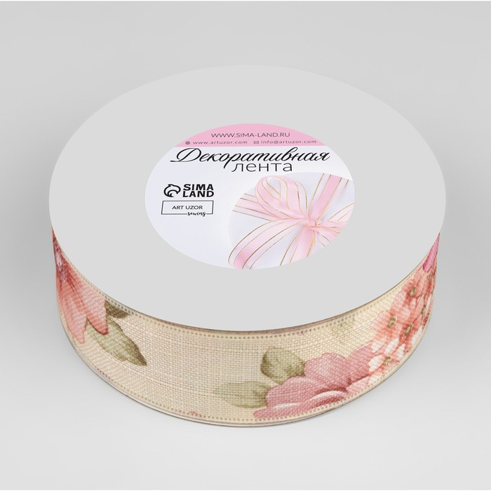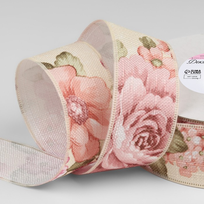 Лента декоративная «Цветы», 40 мм, 23 ± 1 м, цвет бежевый №2