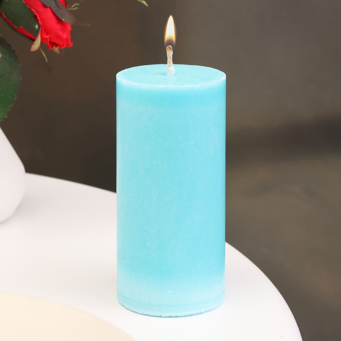 Свеча-цилиндр гладкая, 5х10 см, бирюзовая, 6 ч