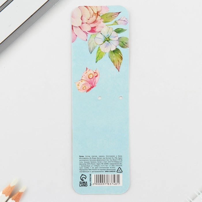 Ручка шариковая синяя паста «Цветок»,пластик, на подложке 8 марта