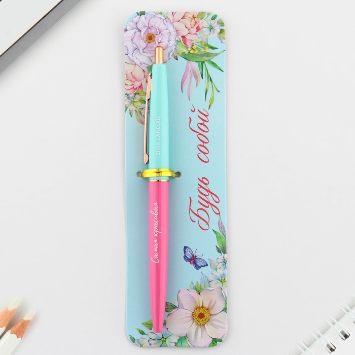 Ручка шариковая синяя паста автоматическая 0.7 мм «Будь собой» пластик