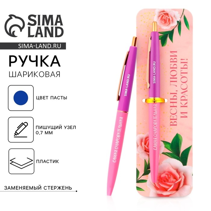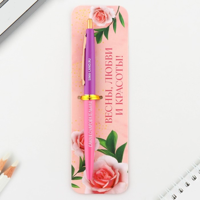 Ручка шариковая синяя паста автоматическая 0.7 мм «Весны, любви и красоты!» пластик
