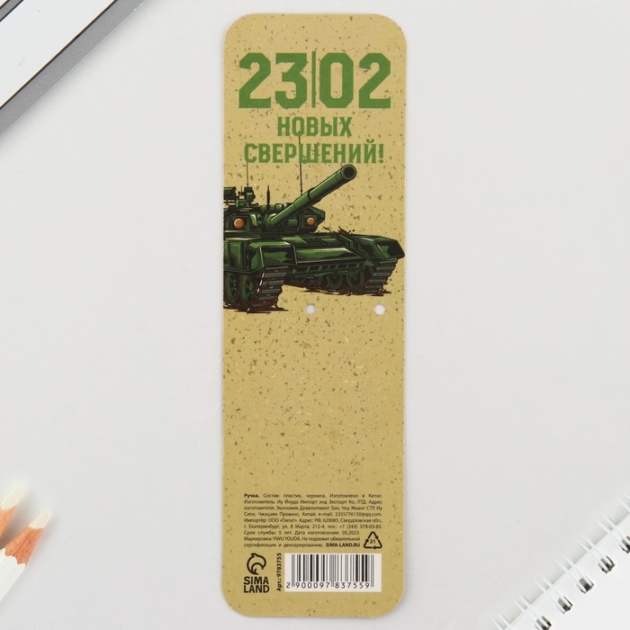 Ручка шариковая синяя паста, пластиковая со звездой "С 23 Февраля"