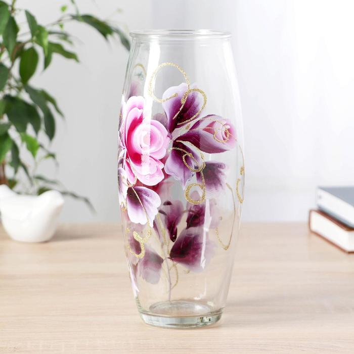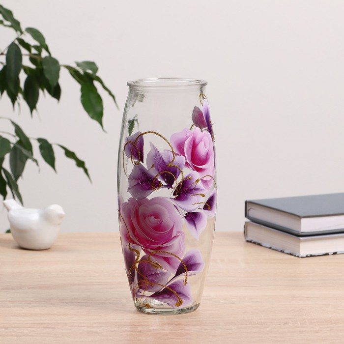 Ваза "Роза" роспись на проз.стекле, d-7см 10х23 см