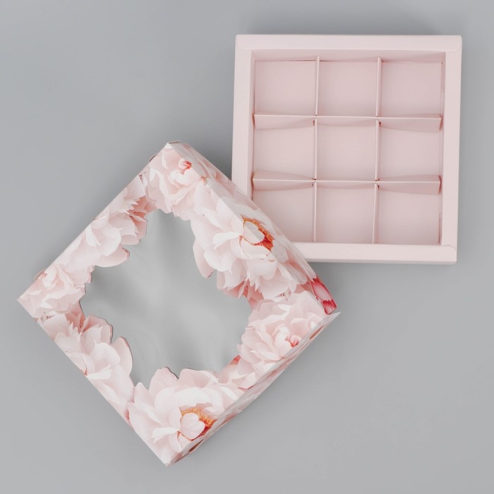 Коробка для конфет, кондитерская упаковка, 9 ячеек, «Нежность», 14.7 х 14.7 х 3.5 см