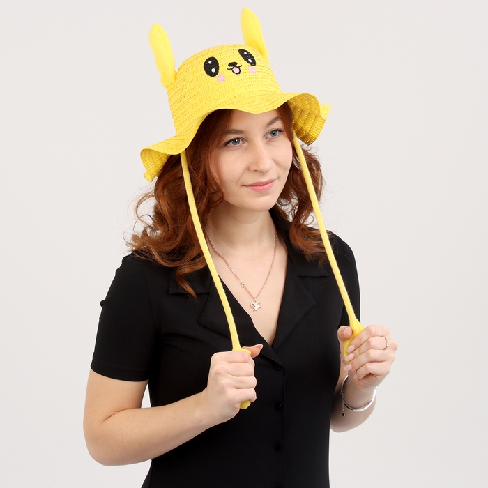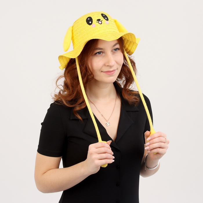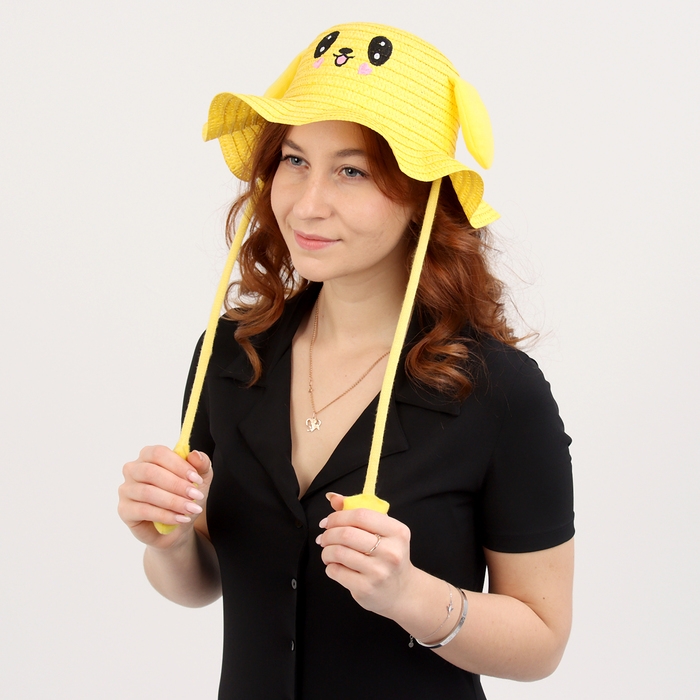 Панама "Милый зайка", уши поднимаются р-р 52-54 цвет жёлтый