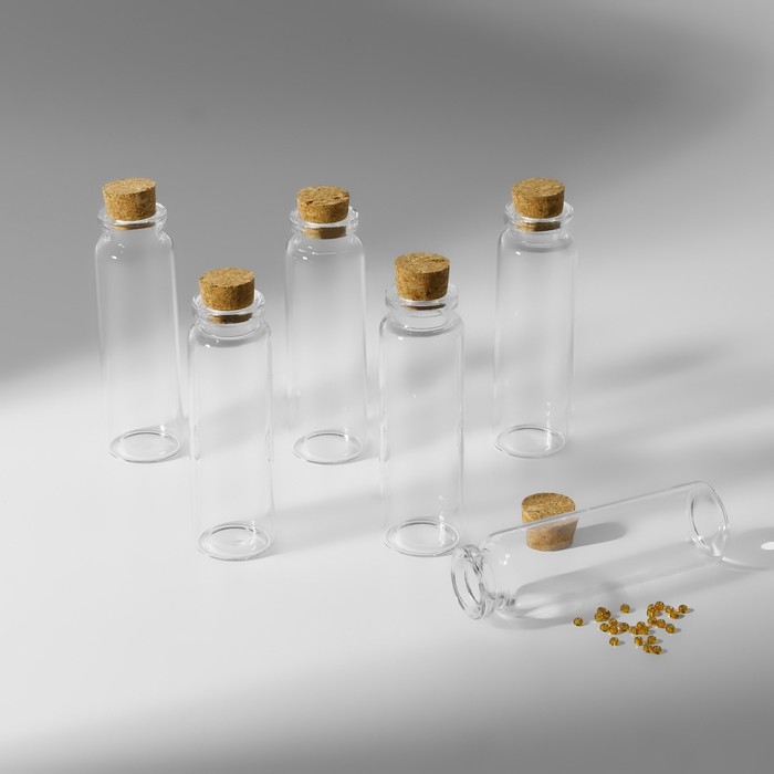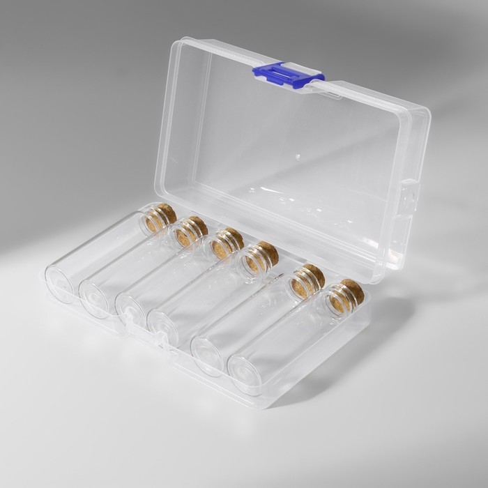Набор баночек для хранения бисера, d = 2,2 × 7 см, 6 шт, в контейнере, 14,5 × 8,5 × 3,5 см