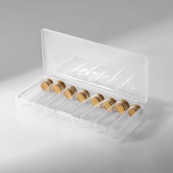 Набор баночек для хранения бисера, d = 1,7 × 5 см, 8 шт, в контейнере, 14,2 × 5,8 × 2,3 см