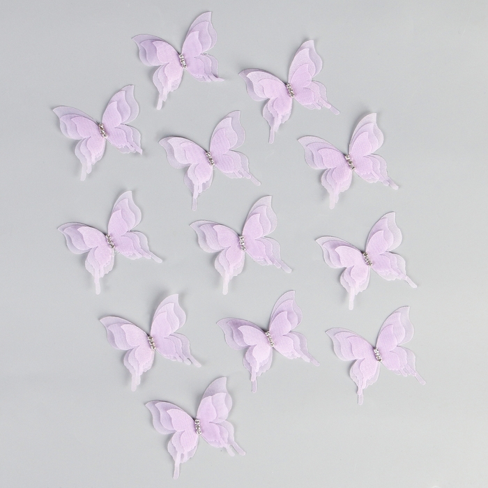 Декор для творчества «Бабочка», трёхслойный, набор 12 шт., размер 1 шт. — 5 × 4,5 см, цвет сиреневый