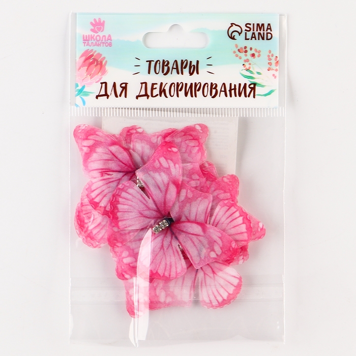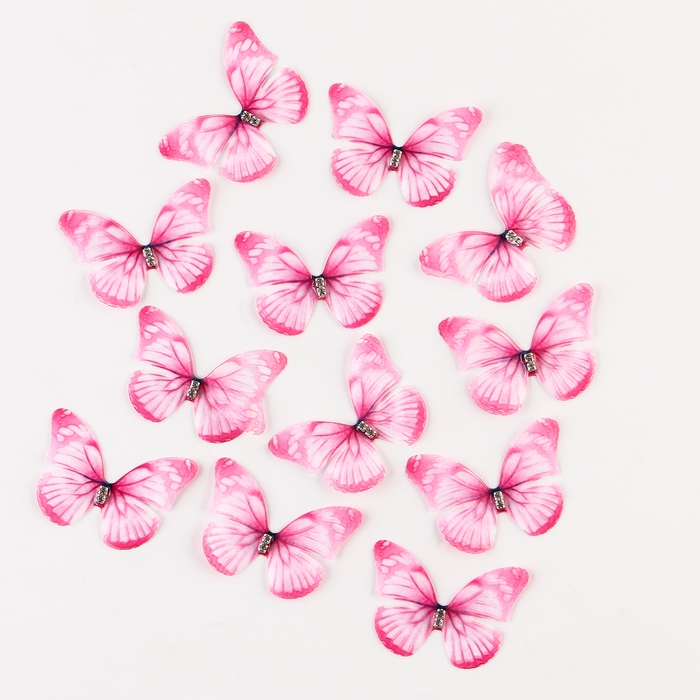 Декор для творчества «Бабочка», двухслойный, набор 12 шт., размер 1 шт. — 5 × 4 см, цвет розовый