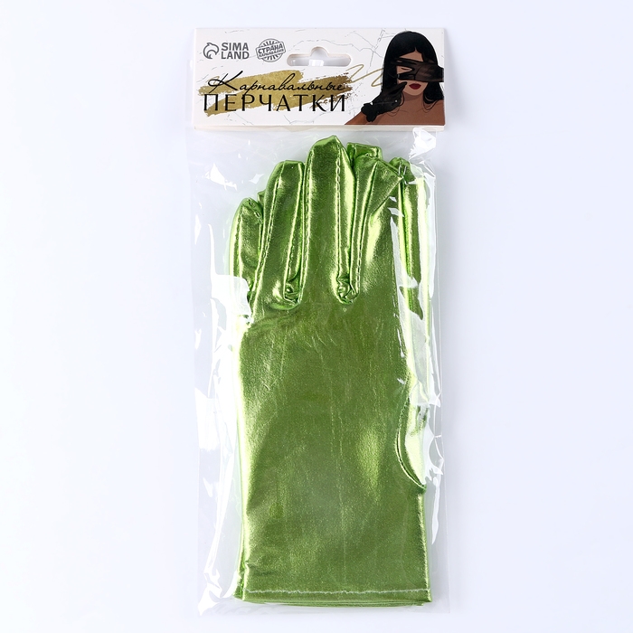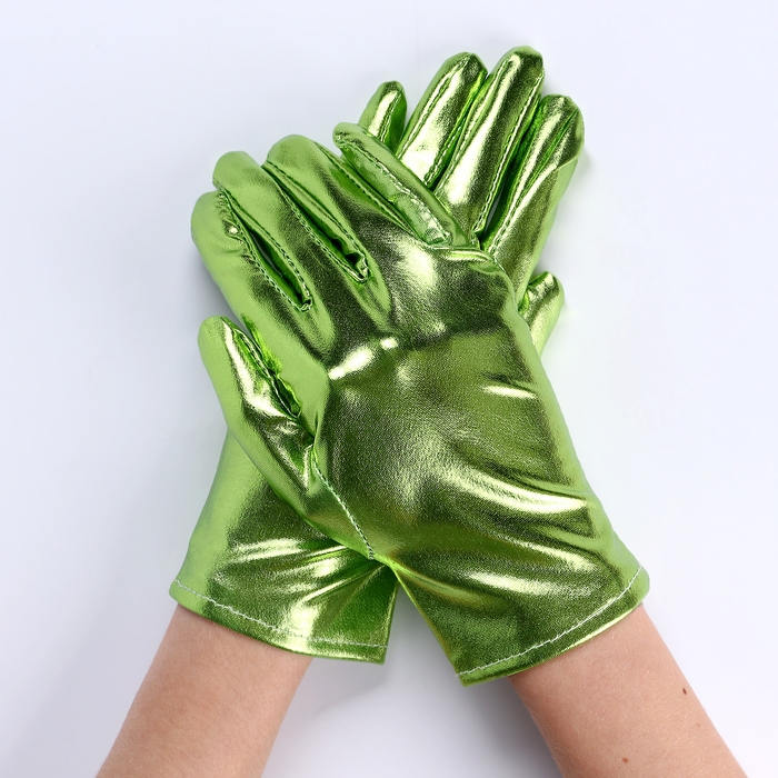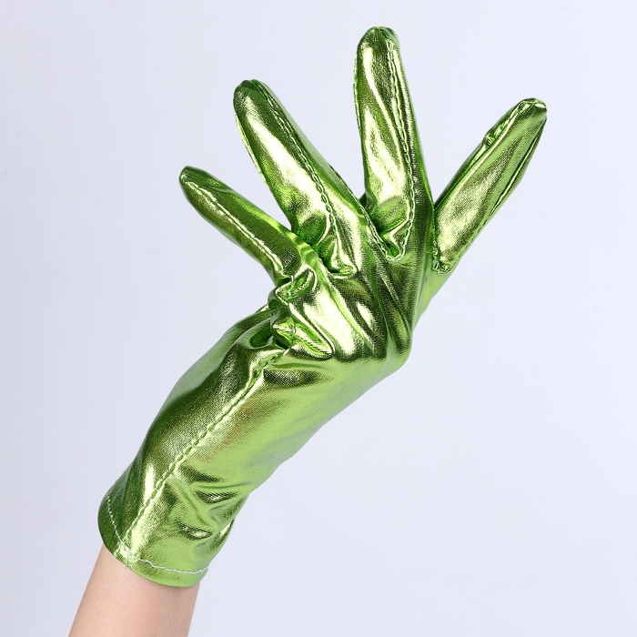 Перчатки женские, цвет зелёный, металлик, искусственная кожа