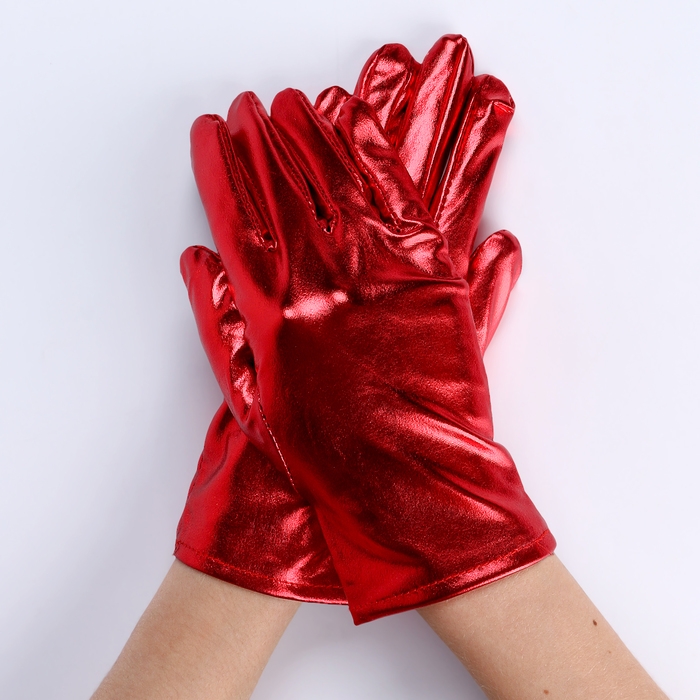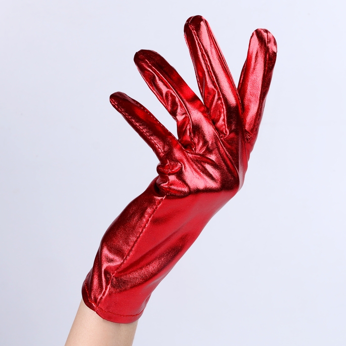 Перчатки женские, цвет красный, металлик, искусственная кожа